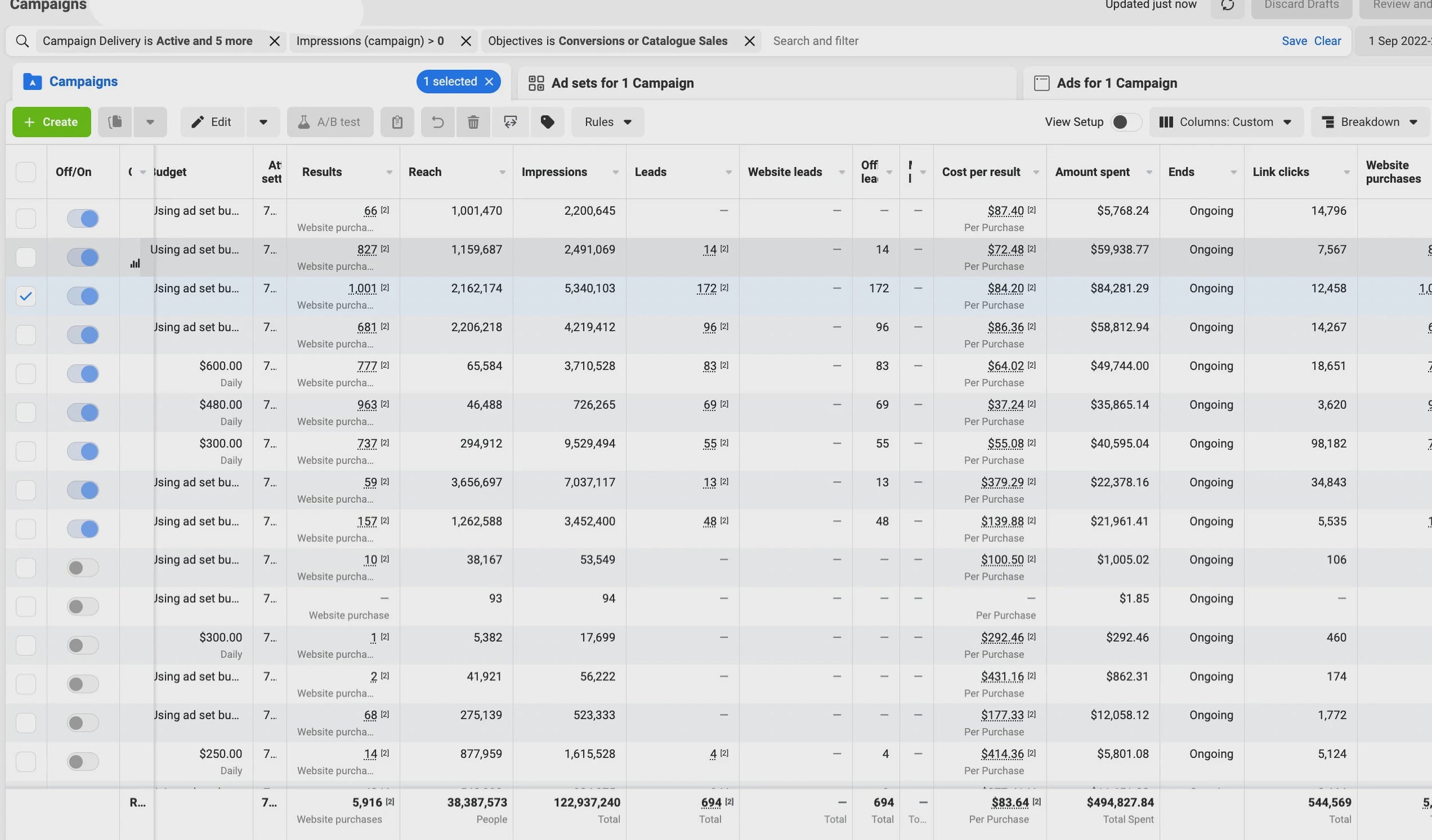 From Sept 2022 – ongoing, this campaign reached more than 38.3 million people and generated over 5,916 website purchases with a total spend of $494,827. The average cost per purchase was $83.64, supported by 544,569 link clicks and more than 122M impressions. By scaling budgets strategically across high-performing ad sets, refining audiences, and optimizing creatives, the campaign delivered both massive reach and consistent conversions for a fashion e-commerce brand.